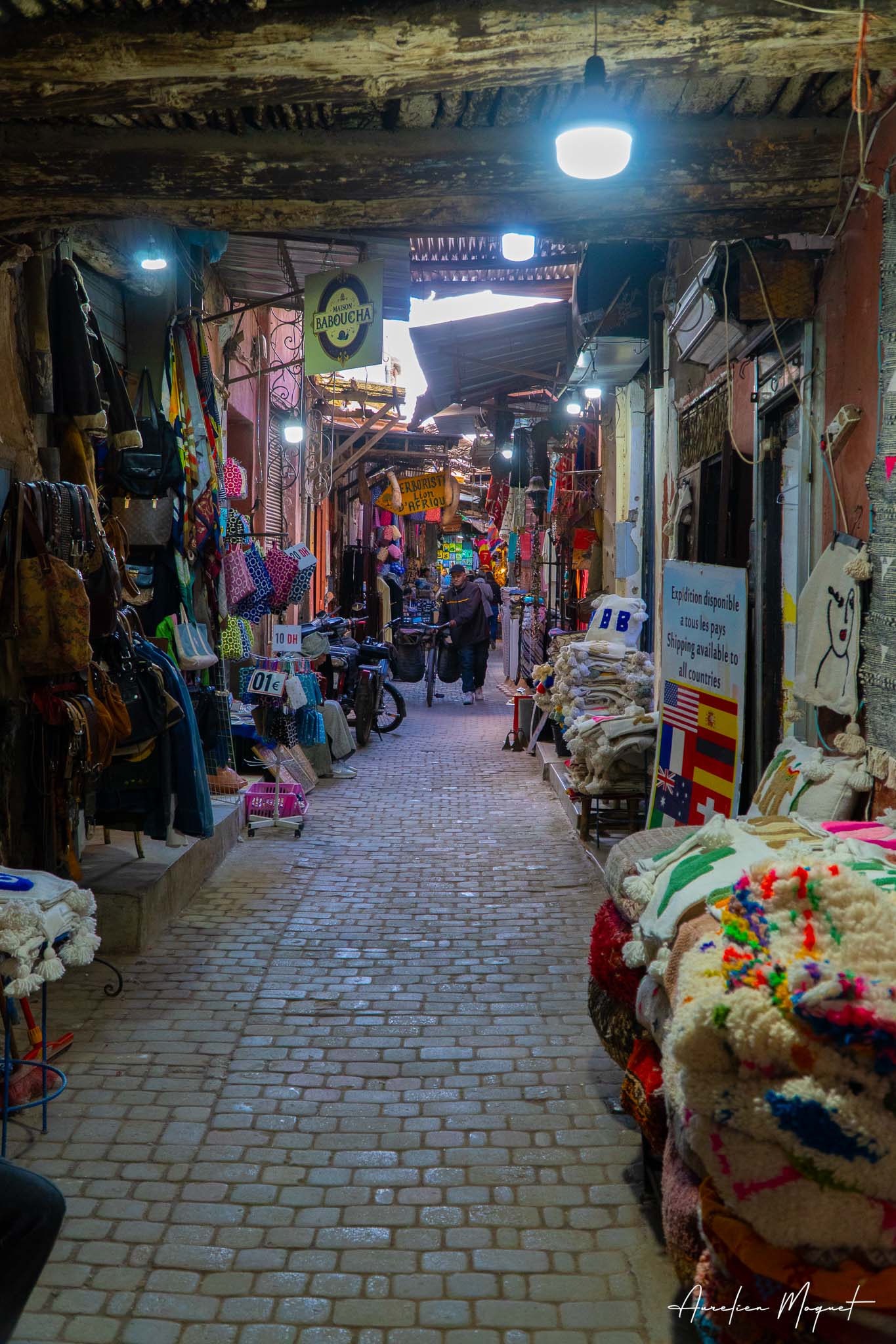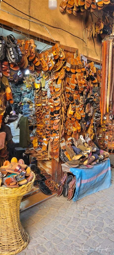 Et juste à côté, s’étendent les souks, un labyrinthe sans fin où l’on se perd avec délice. Cuirs, épices, poteries, babouches… chaque allée est une nouvelle découverte, une négociation, une invitation au voyage des sens. J’ai arpenté ces dédales pendant des heures, me laissant porter par les parfums, les couleurs éclatantes, et cette énergie unique qui y règne