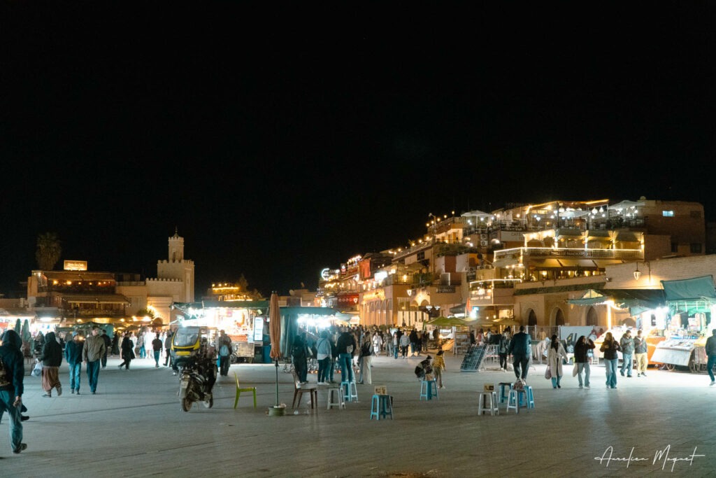 Le véritable théâtre de Marrakech, c’est la place Jemaa el-Fna. De jour, elle s’éveille doucement avec ses charmeurs de serpents et ses conteurs. Mais c’est le soir qu’elle révèle sa magie la plus intense. L’air se remplit des fumées des stands de nourriture, des musiques des gnaouas, des rires et des discussions. Un spectacle vivant et hypnotisant.